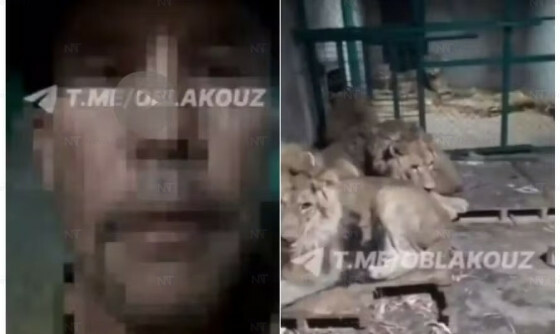 O tratador chamado F Iriskulov, 44, foi visto destrancando um cadeado no zoológico particular, o Lion Park em Parkent, no Uzbequistão, durante seu turno noturno às 5 da manhã. Os três leões que mais tarde o atacariam escaparam para o pátio de seu recinto.